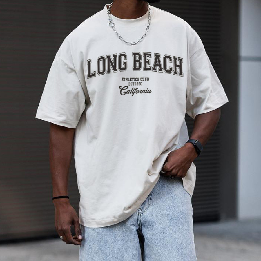 t-shirts,мужская свободная повседневная светло-серая футболка с буквенным принтом в стиле американский ретро-уличный тренд