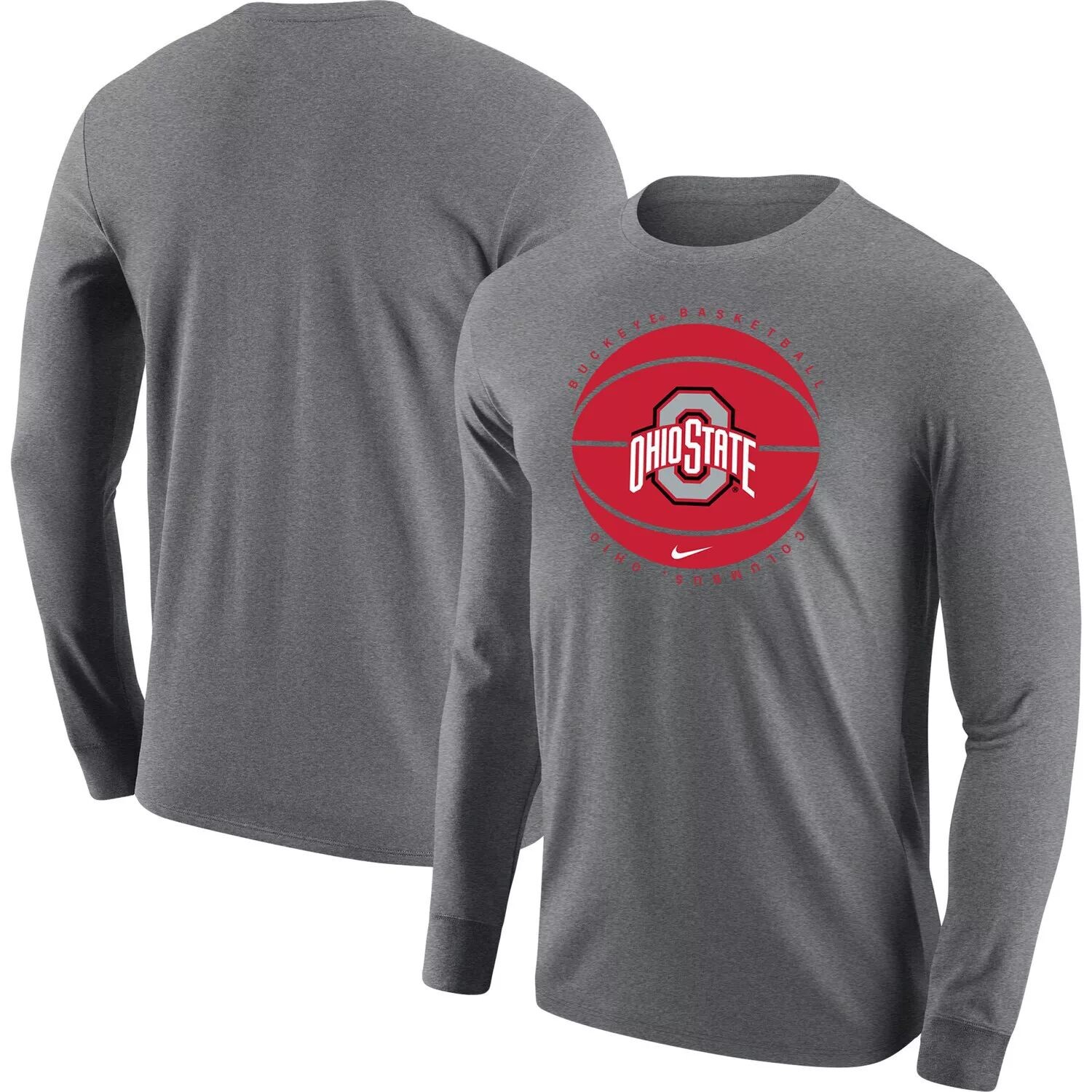 Мужская серая баскетбольная футболка с длинным рукавом Nike Ohio State Buckeyes, Серый