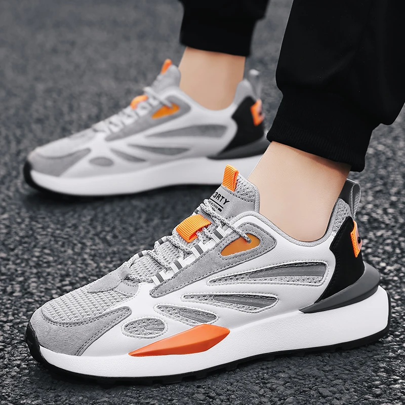 Мужская спортивная обувь, дышащие сетчатые, на шнуровке, повседневные Нескользящие, Вулканизированная подошва
