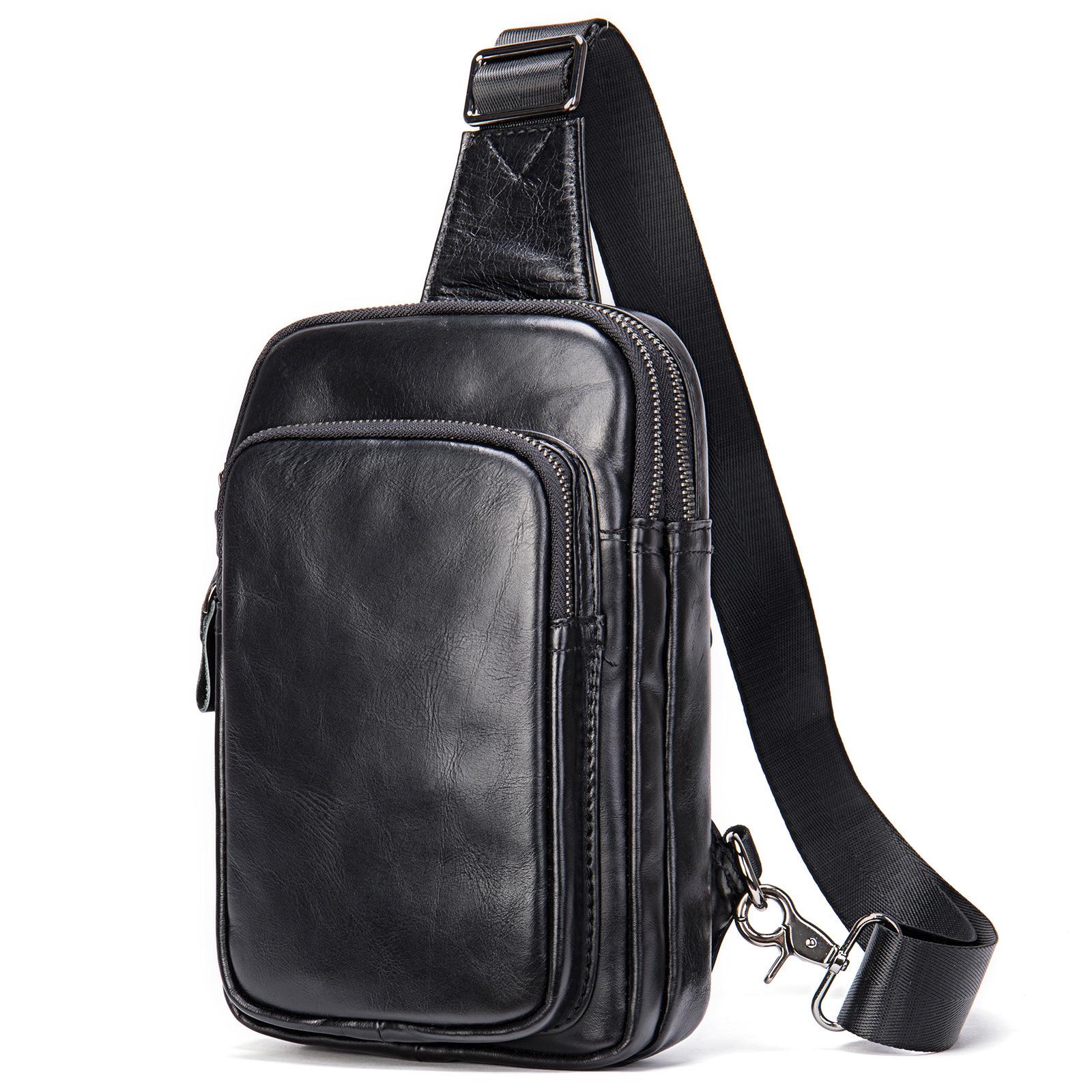Мужская сумка-саквояж, повседневная сумка на грудь, большая вместимость, сумка через плечо, модная трендовая сумка на голову из коровьей кожи чёрный