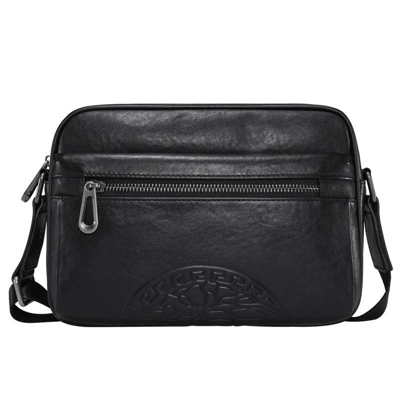 Мужская сумка через плечо из натуральной кожи Мужская сумка с горизонтальным верхним слоем Сумка из коровьей кожи Мягкая кожаная сумка Деловая повседневная сумка через плечо Тренд чёрный