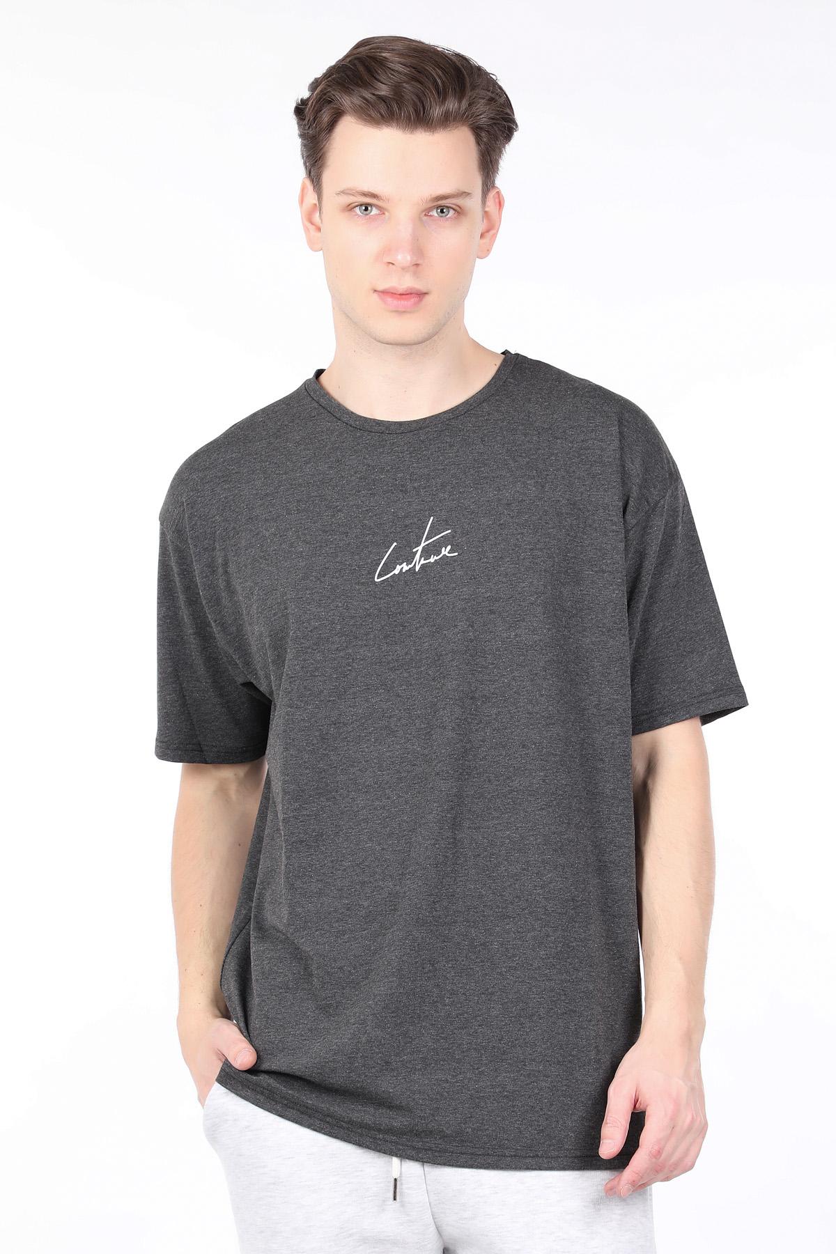 Мужская темно-серая футболка с круглым вырезом и принтом S серый