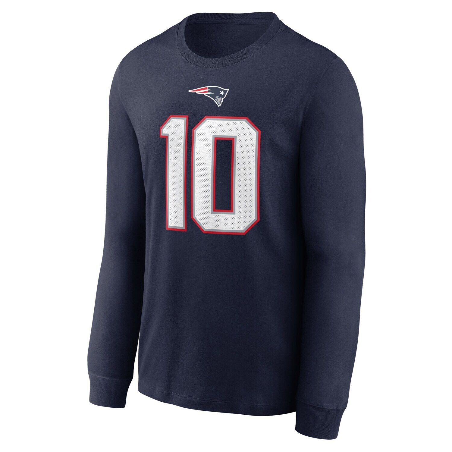 Мужская темно-синяя футболка Mac Jones New England Patriots с именем и номером игрока с длинным рукавом Nike, Синий, Мужская темно-синяя футболка Mac Jones New England Patriots с именем и номером игрока с длинным рукавом Nike