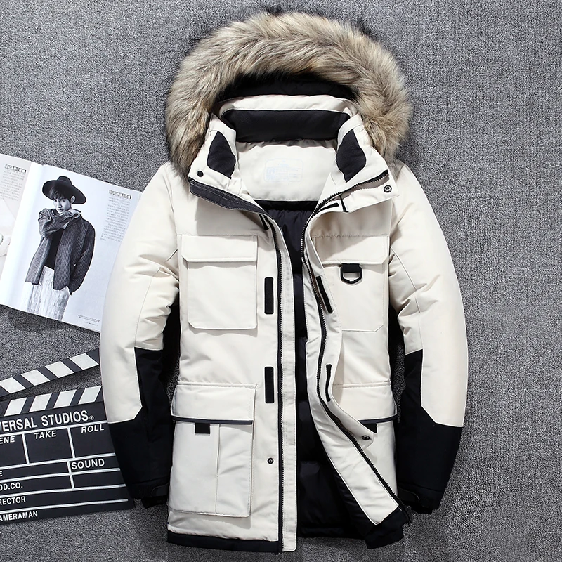 Мужская теплая куртка на белом утином пуху, с меховым воротником и защитой от ветра, до-40 градусов, новинка зимнего сезона 2022