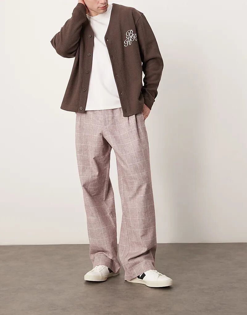 Широкие элегантные брюки с фактурной клеткой в выцветшем бордовом цвете ASOS DESIGN