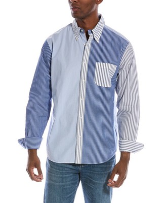 Мужская тканая рубашка в полоску Brooks Brothers, синяя, Синий