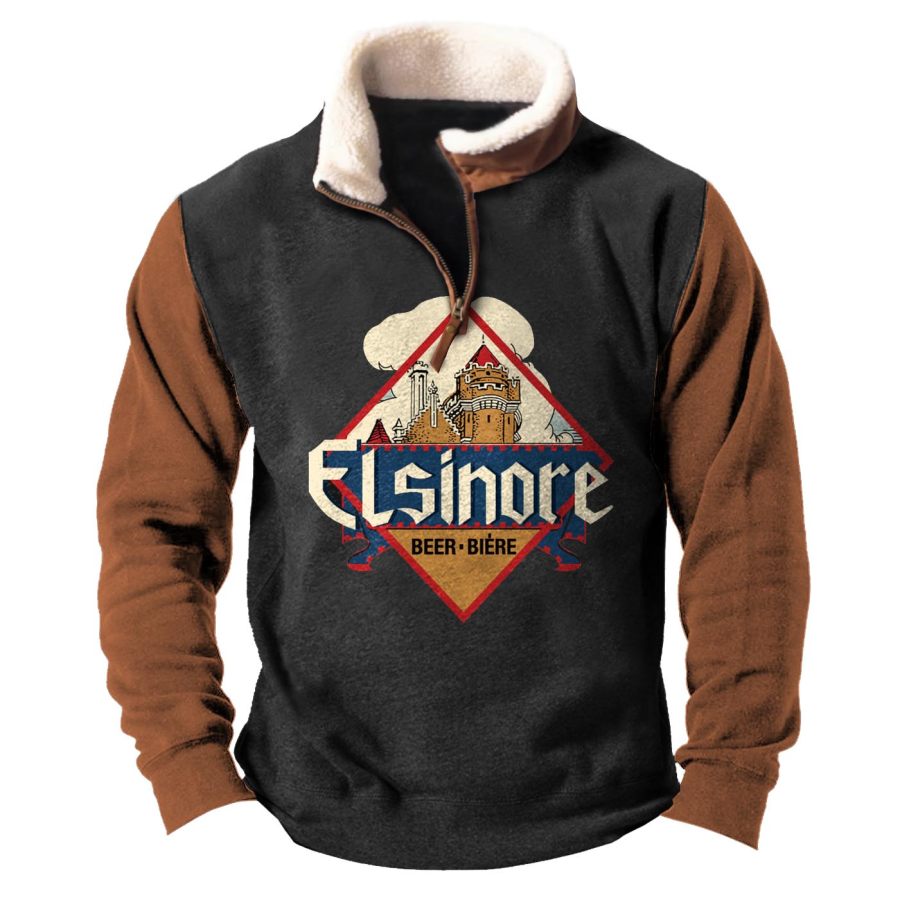 Мужская толстовка Пиво на молнии на четверть Винтаж Повседневные Топы Карамель