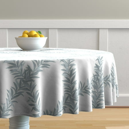 Cotton Sateen Tablecloth 70 Round - Gray Blue Botanical Trellis Lattice Leaves Floral Cottagecore Print Custom Table Linens by Spoonflower