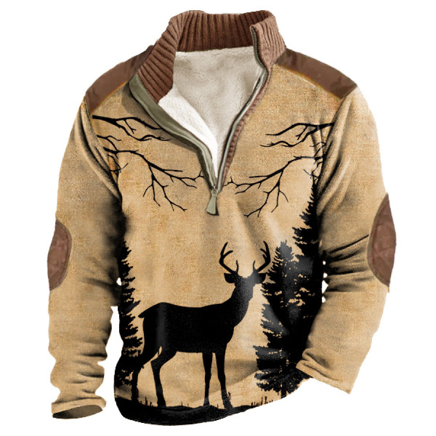 Мужская толстовка винтажный охотничий олень лесной принт флисовая молния контрастного цвета повседневные топы