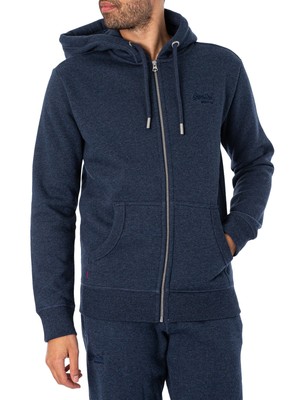Мужская толстовка на молнии с вышитым логотипом Superdry, синяя, Синий
