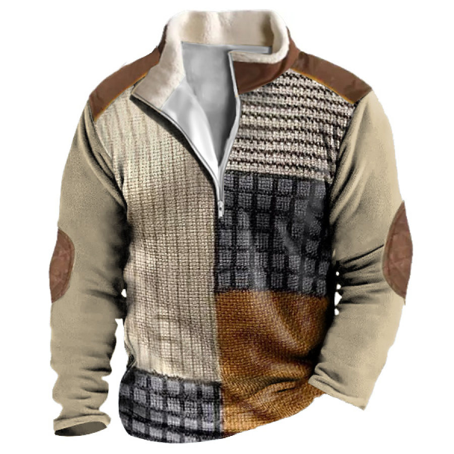 Мужская толстовка с винтажным 3D-принтом и цветными блоками фестиваль праздник молния плюшевый воротник цветные блоки повседневные топы