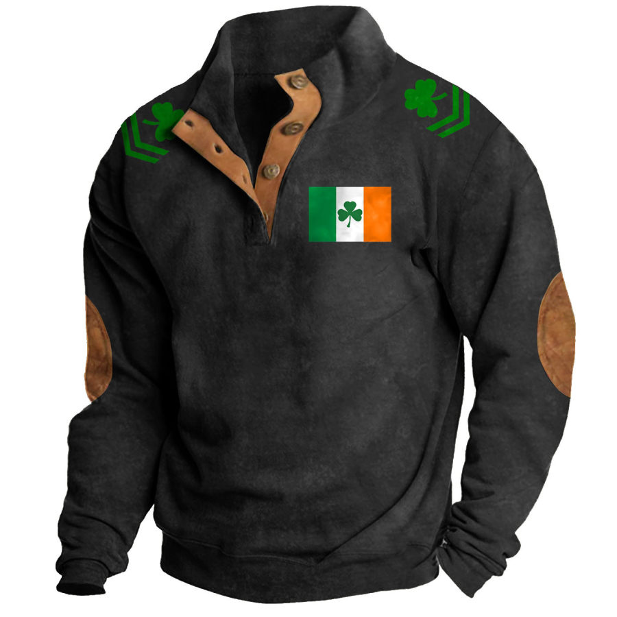 Мужская толстовка с ирландским флагом трилистником воротником-стойкой и пуговицами винтажные повседневные топы