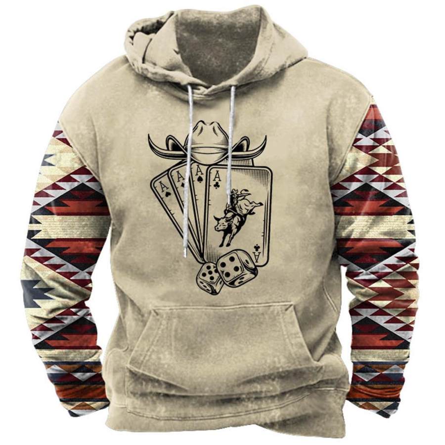 hoodies & sweatshirts,мужская толстовка с капюшоном винтажная ацтекская шляпа с игральными картами в стиле вестерн бычьи рога карман длинный рукав большие размеры повседневные топы