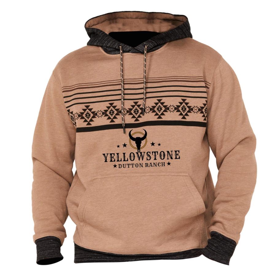 Мужская толстовка с капюшоном в винтажном стиле Йеллоустоун повседневные топы с длинными рукавами и карманами ацтеков