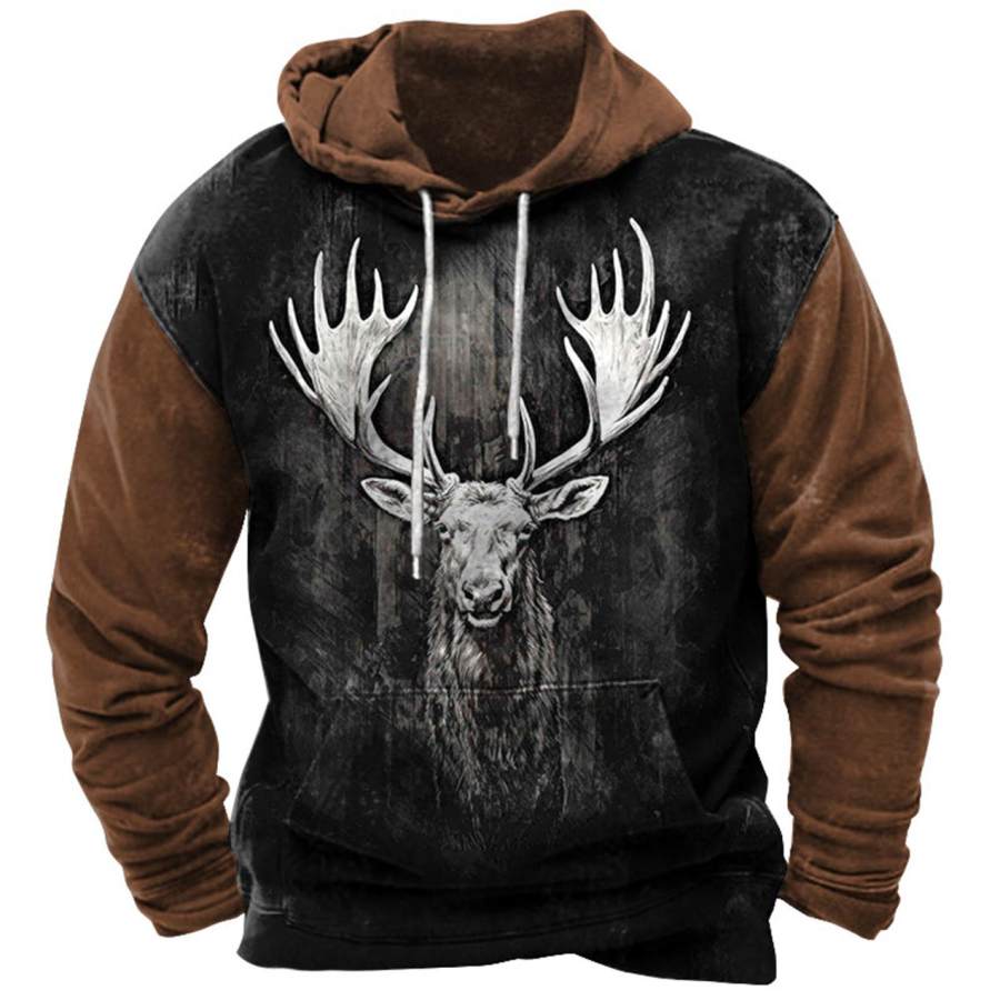 hoodies & sweatshirts,мужская толстовка с капюшоном в винтажном стиле с принтом лося и оленя и карманом с длинными рукавами и цветными блоками повседневные топы