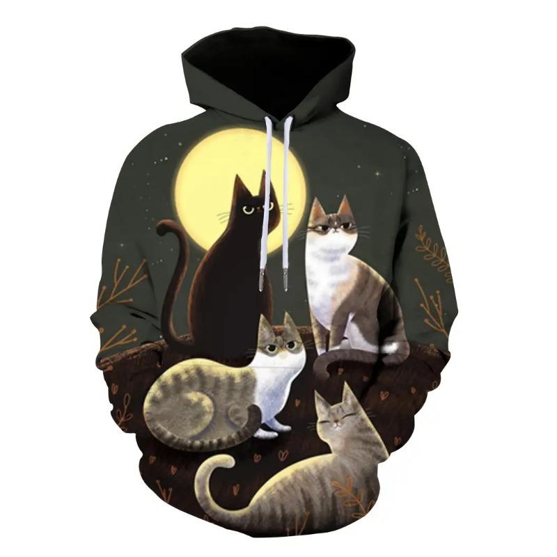Мужская толстовка с капюшоном с милым принтом кота Толстовки с капюшоном Harajuku Футболка с капюшоном Y2k Пуловер Повседневная одежда Уличная одежда Топ Мужская одежда 2XL