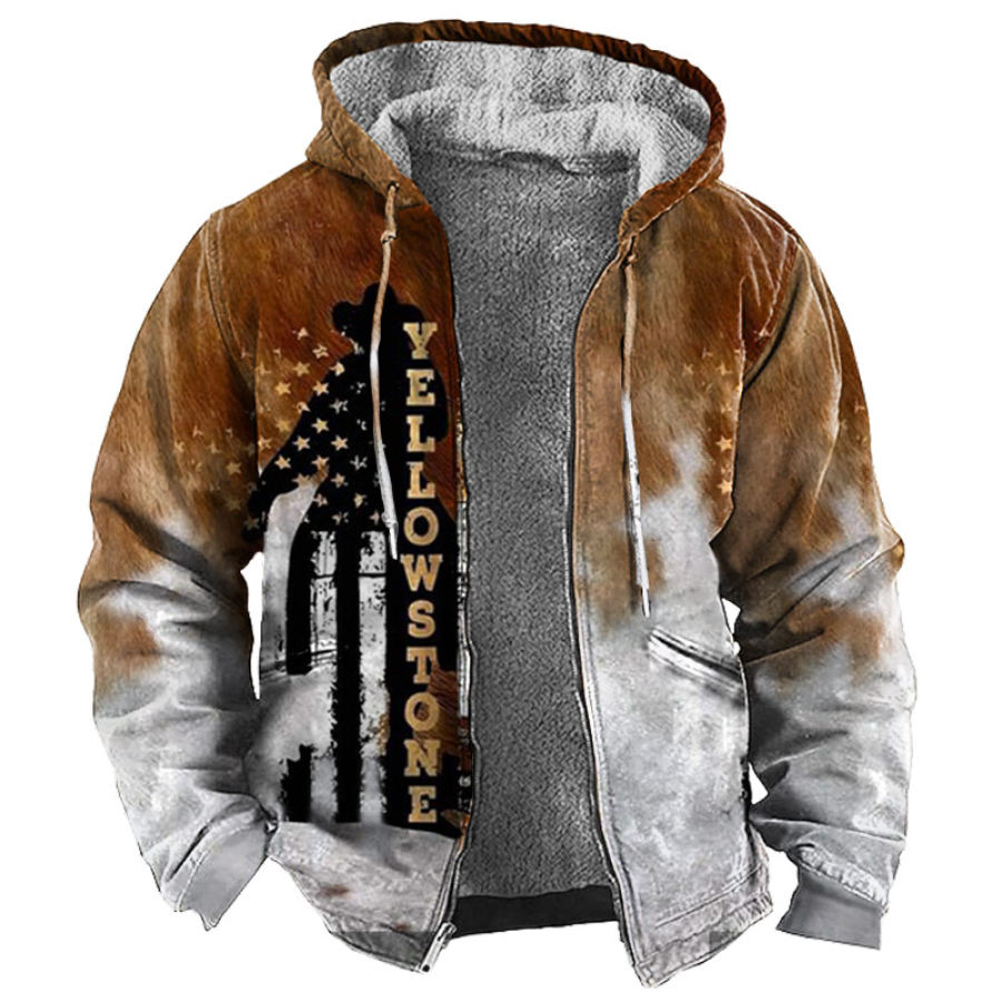 coats & jackets,мужская толстовка с капюшоном на молнии винтажная флисовая куртка на молнии в стиле вестерн йеллоустоун ковбой с графическим принтом