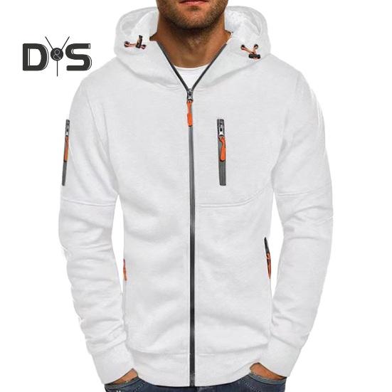 Мужская толстовка с капюшоном на осень-зиму, свободная, с длинными рукавами, карманами на молнии, с капюшоном, тонкий однотонный повседневный пиджак XXXL белый