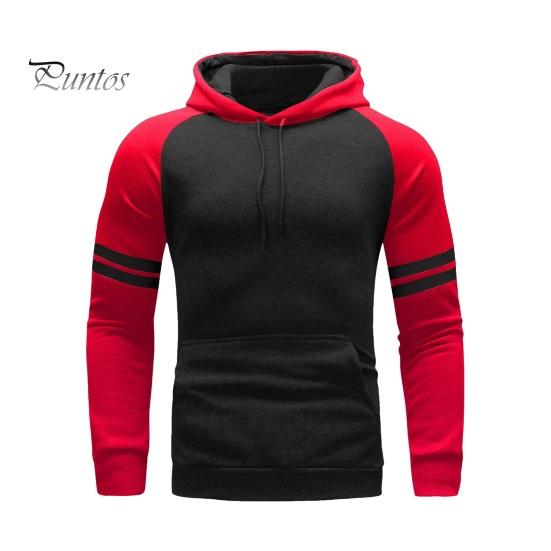 Мужская толстовка с капюшоном на осень-зиму с цветными блоками, длинными рукавами, большим карманом, эластичными манжетами и подолом, тонкая облегающая повседневная одежда, повседневный спортивный топ M красный