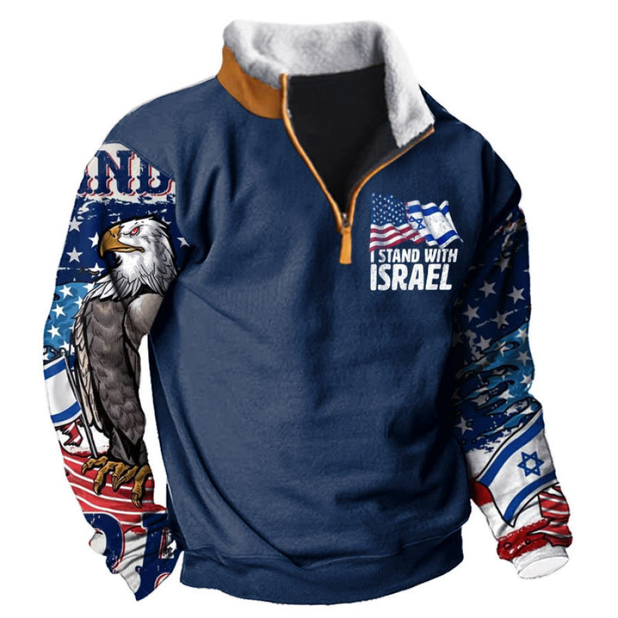 hoodies & sweatshirts,мужская толстовка с капюшоном на полумолнии с американским флагом и израильским принтом с цветными блоками