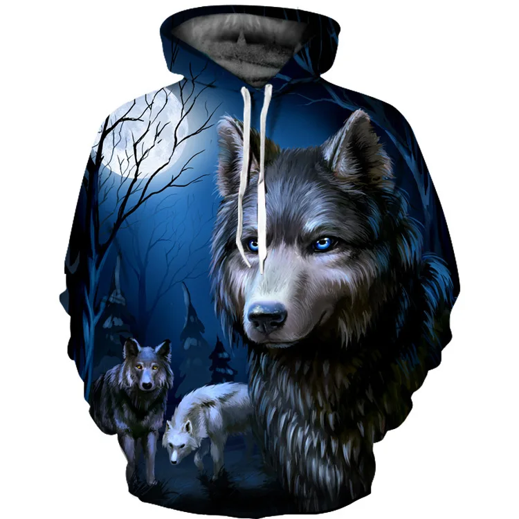 Мужская толстовка с капюшоном, черная Повседневная Толстовка с капюшоном в стиле хип-хоп, с 3D-принтом головы волка, Осень-зима 2021