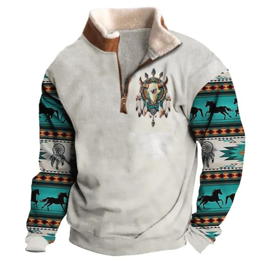hoodies & sweatshirts,мужская толстовка с молнией на четверть в вестерне этнические ацтекские флисовые воротники винтажные повседневные топы