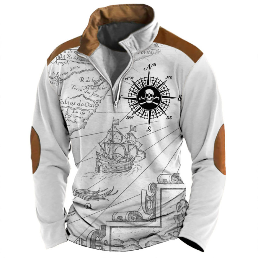 hoodies & sweatshirts,мужская толстовка с молнией на четверть с морской картой компасом и черепом винтажные повседневные топы