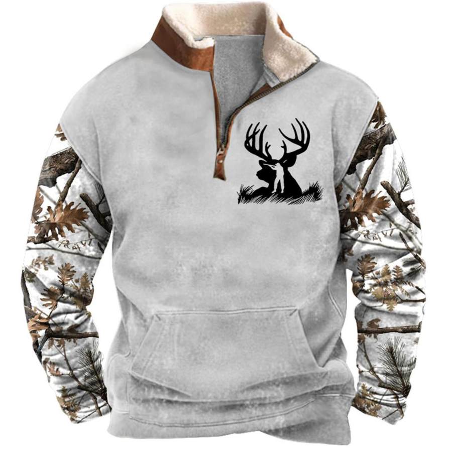 Мужская толстовка с молнией на четверть охотничьи ветки оленя плюшевый воротник винтажные повседневные топы