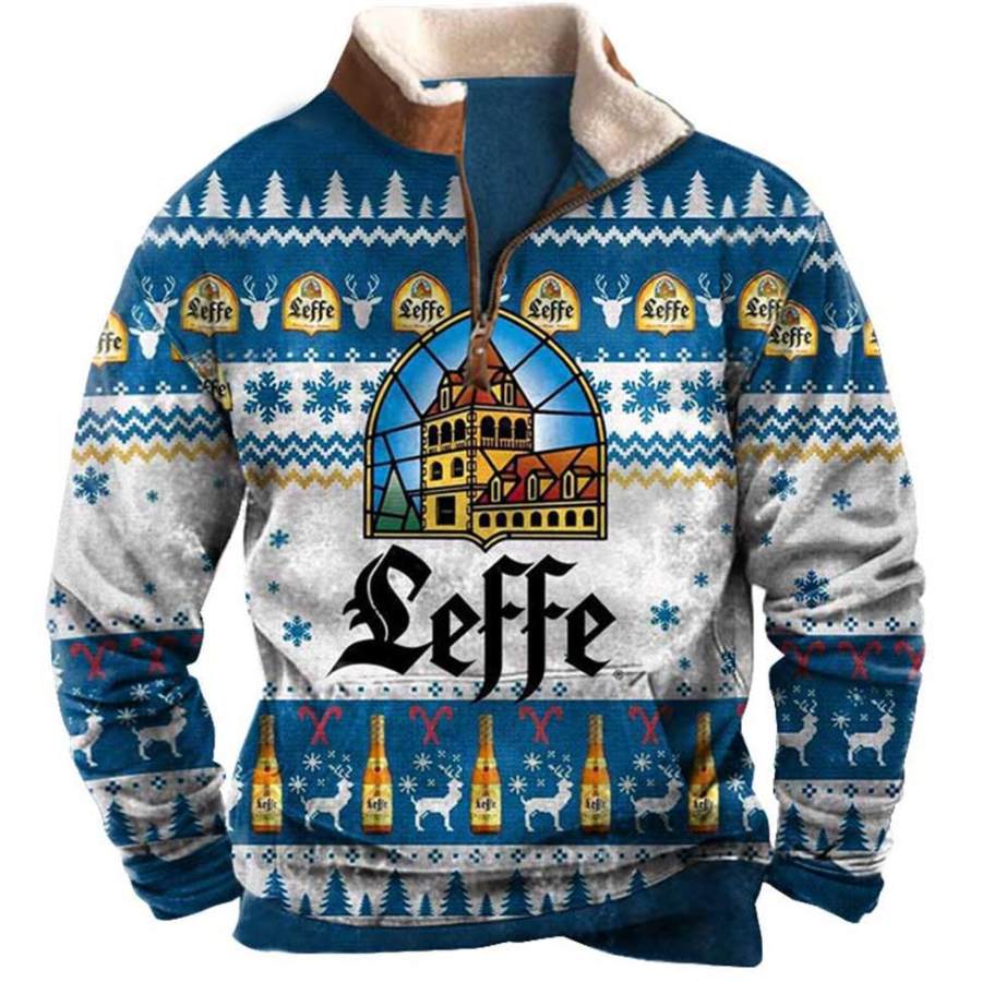 Мужская толстовка с молнией на четверть Seffe Ugly Christmas плюшевый воротник винтажные повседневные топы