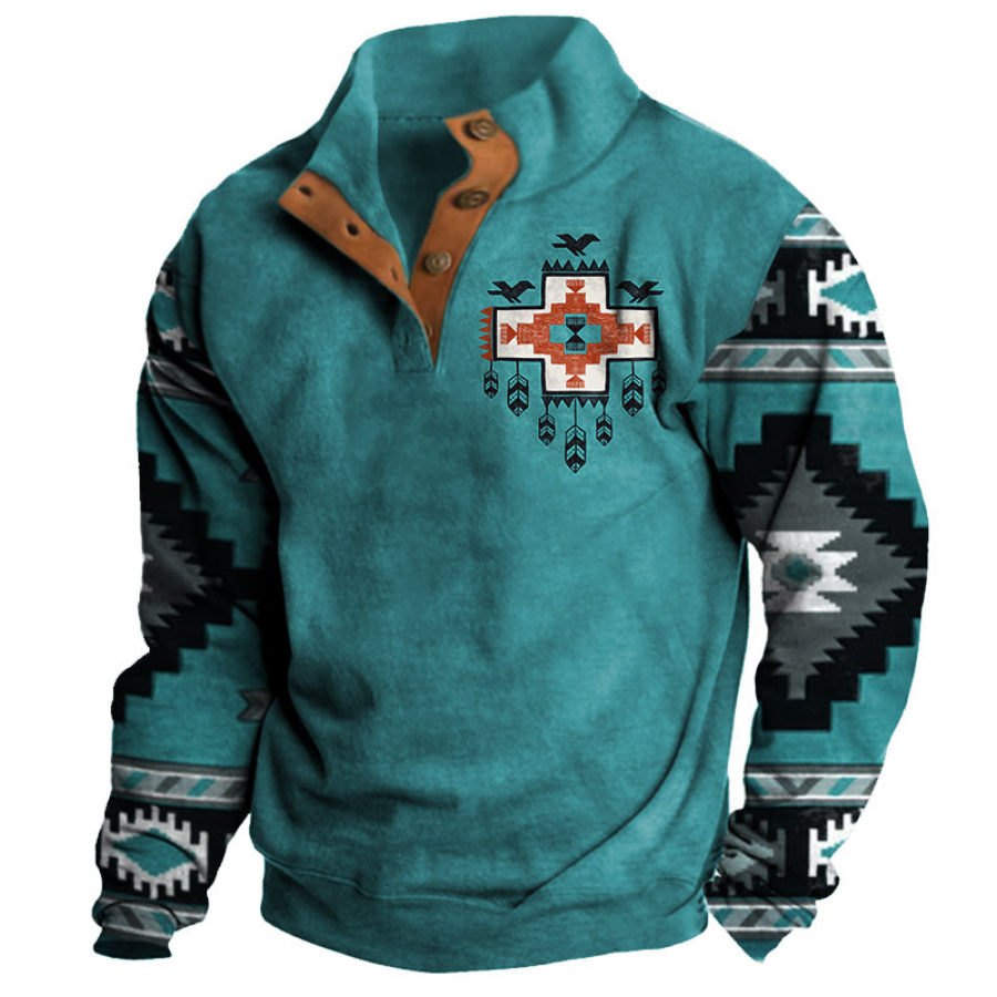 Мужская толстовка с полуоткрытым воротником в стиле ретро с этническим принтом