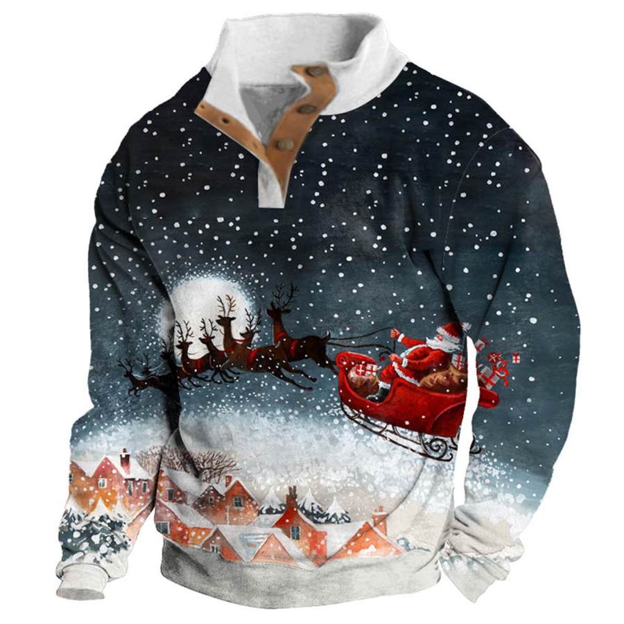 Мужская толстовка с рождественскими пуговицами и воротником-стойкой Santa Reindeer повседневные топы