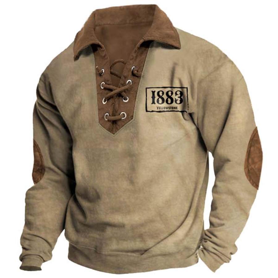 Мужская толстовка 1883 Йеллоустоун винтажные повседневные топы контрастного цвета со шнуровкой и лацканами на локтях