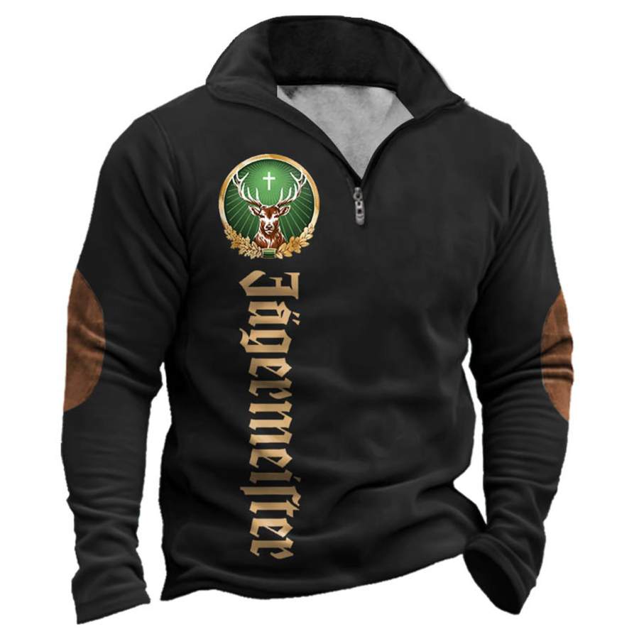 hoodies & sweatshirts,мужская толстовка jägermeister с молнией на четверть в винтажном стиле контрастного цвета повседневные топы
