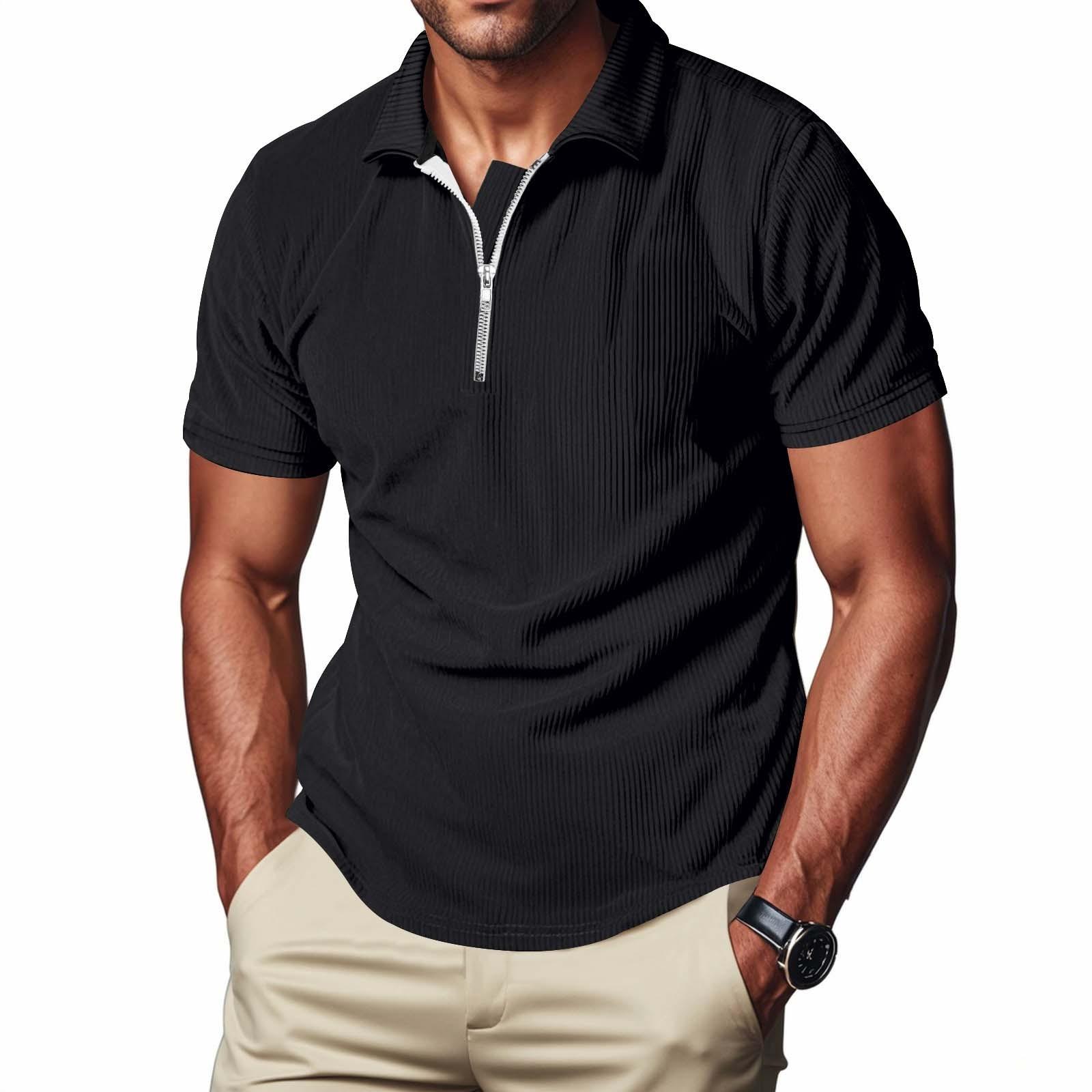 Мужская трикотажная футболка с короткими рукавами и круглым вырезом, ребристый пуловер L чёрный