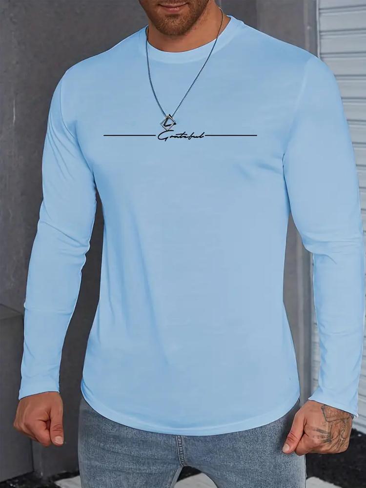 Мужская удобная футболка с длинным рукавом, повседневный топ с круглым вырезом и принтом на все сезоны 5XL синий