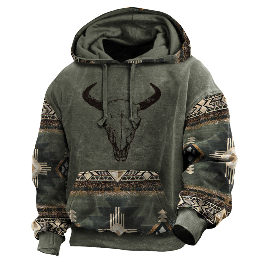 Мужская уличная повседневная толстовка с капюшоном в стиле ретро в западном этническом стиле с контрастным принтом и подтягиванием