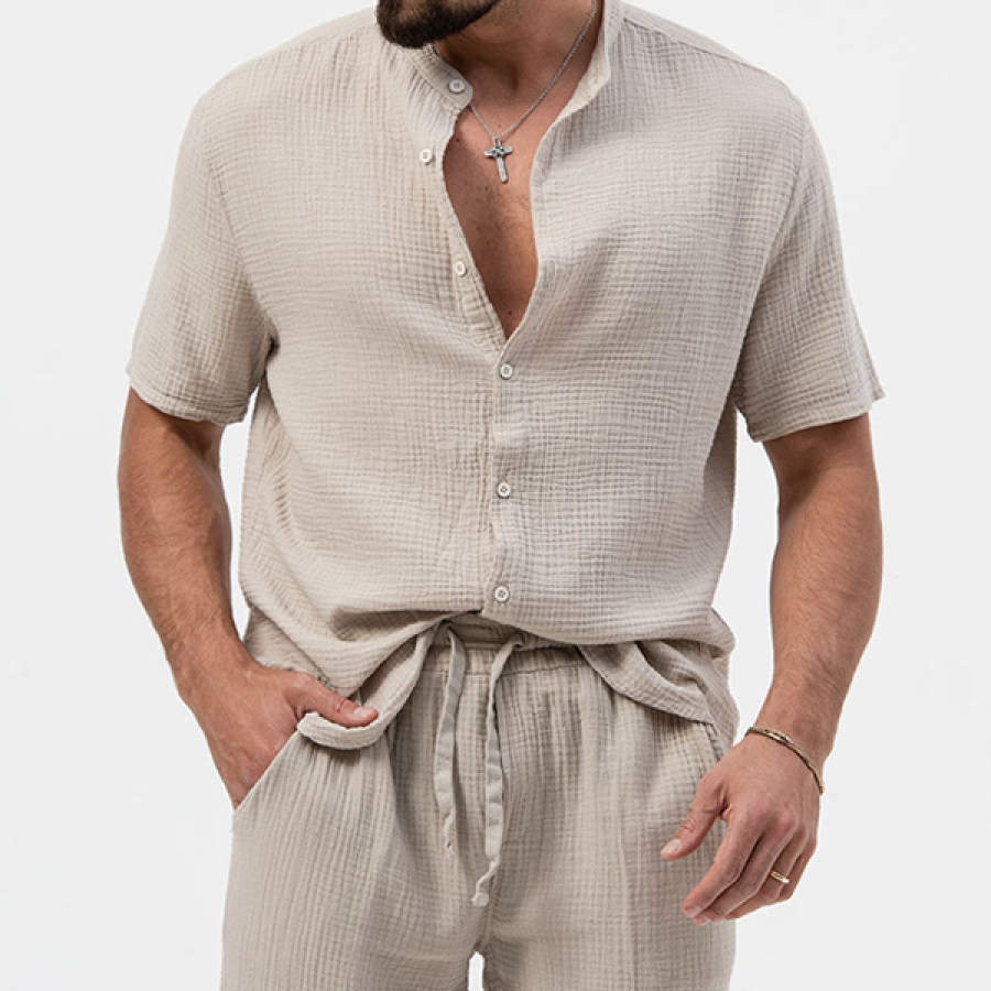 Мужская уличная повседневная хлопково-льняная рубашка с коротким рукавом дышащий удобный мягкий топ