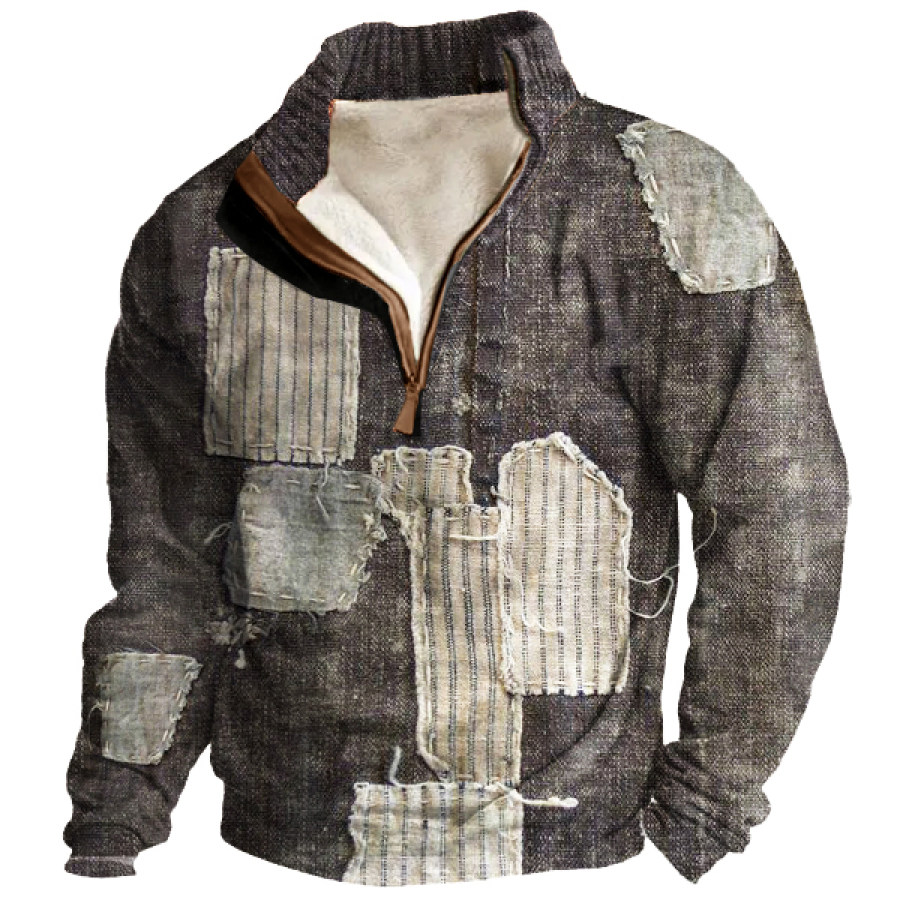 Мужская флисовая толстовка на молнии с 3D-принтом в стиле пэчворк на молнии 1/4 верх с утолщенным воротником-стойкой