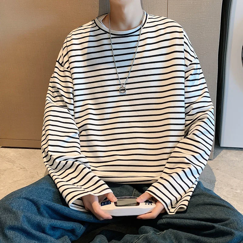 Мужская футболка в полоску, с длинным рукавом и круглым вырезом