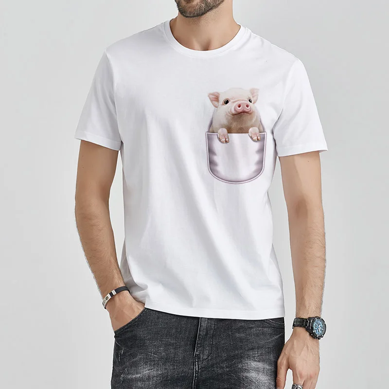 Мужская футболка, забавная уличная футболка большого размера, топы с принтом поросенка, летняя футболка Harajuku, крутая Повседневная футболка унисекс с коротким рукавом