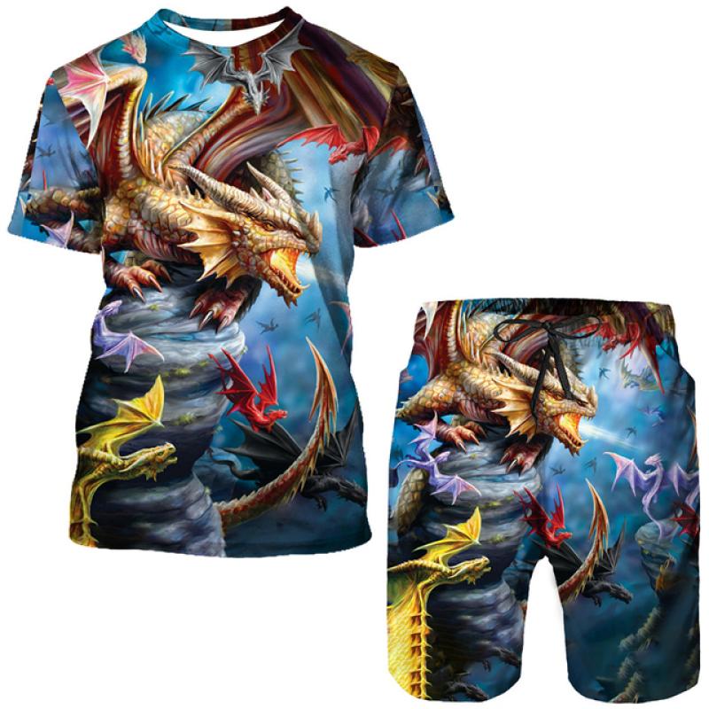 Мужская футболка/костюм с 3D принтом Flying Dragon Totem Art, летний крутой топ с короткими рукавами + шорты, комплект, готический спортивный костюм в стиле хип-хоп 2XL