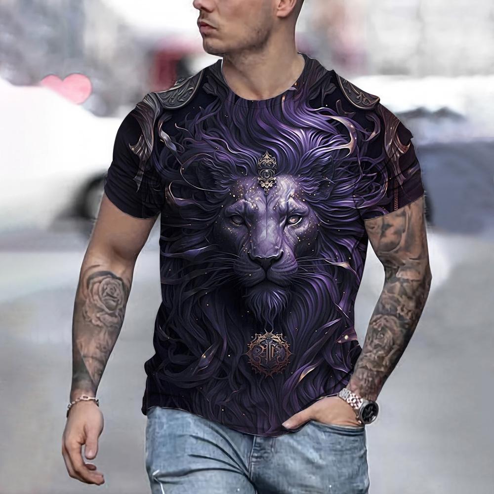 Мужская футболка, летняя, свободная и дышащая, с коротким рукавом, с принтом льва, с круглым вырезом, модная одежда, мужская одежда, футболка по низкой цене 5XL