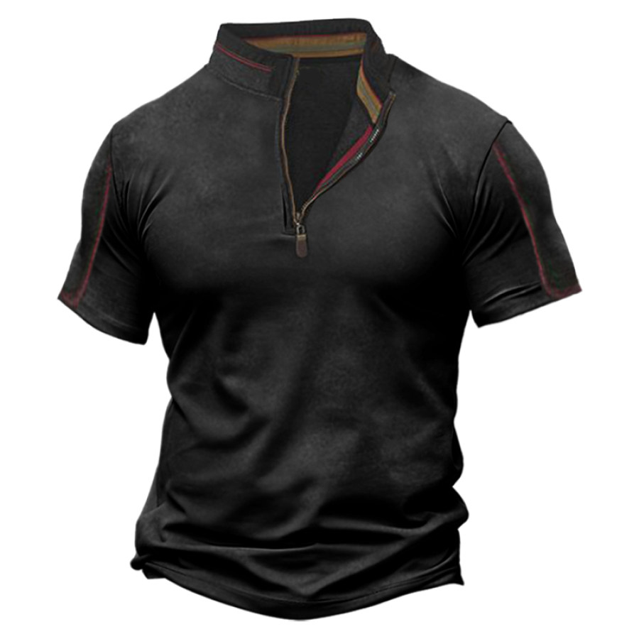 t-shirts,мужская футболка на молнии 1/4 в стиле ретро с цветными блоками и воротником-стойкой футболка с короткими рукавами