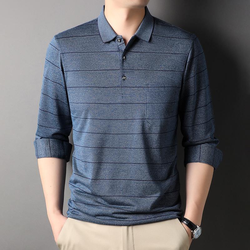 Мужская футболка-поло с длинным рукавом в полоску, повседневная мягкая дышащая рубашка, вязаный свитер XXXL синий