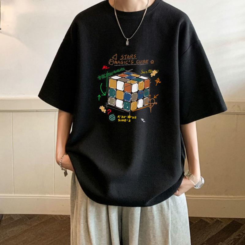 Мужская футболка с вафельными рукавами из пяти частей, свободная тенденция, летняя футболка с короткими рукавами и положительными плечами, дышащие, впитывающие пот, удобные топы 3XL чёрный