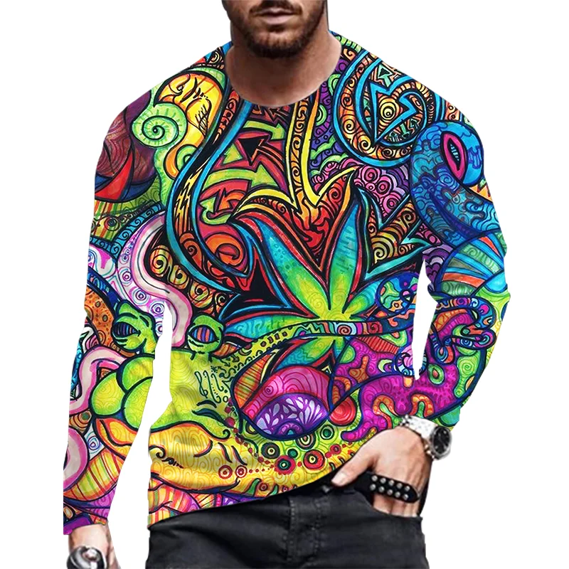 Мужская футболка с длинным рукавом, винтажная Стильная мужская футболка с принтом кленовых листьев, стиль Харадзюку, Повседневная мода, сез...