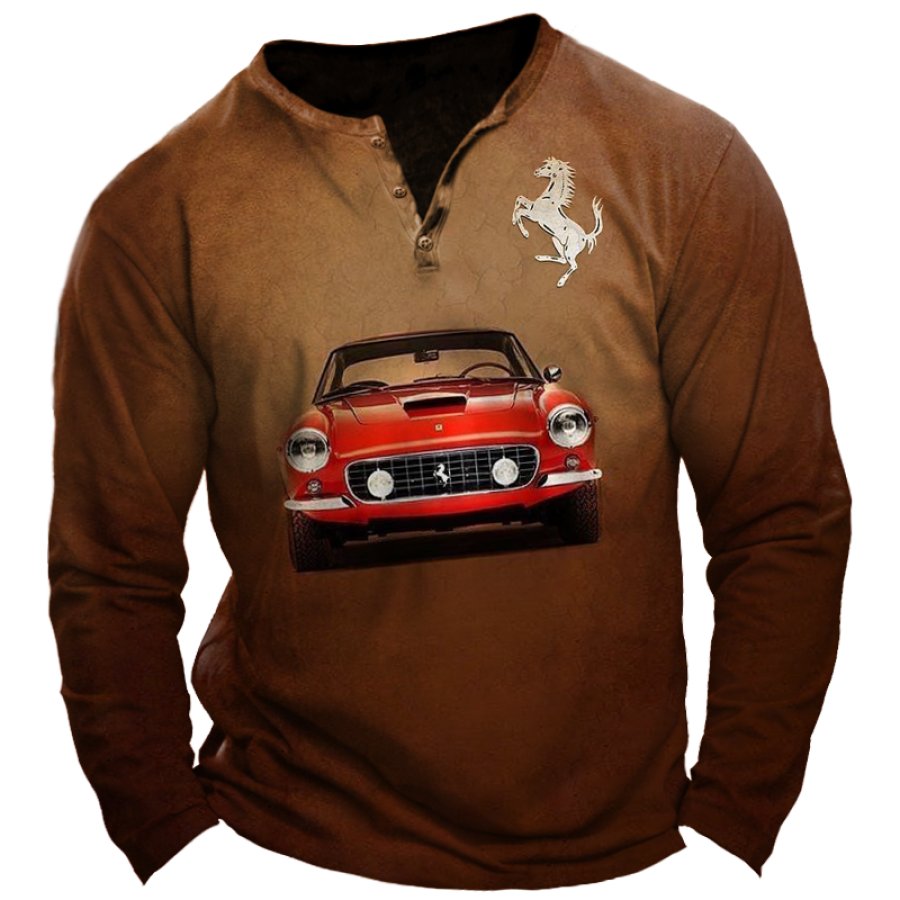 t-shirts,мужская футболка с длинным рукавом и воротником-хенли с принтом «антикварный автомобиль ferrari classic car» в стиле ретро