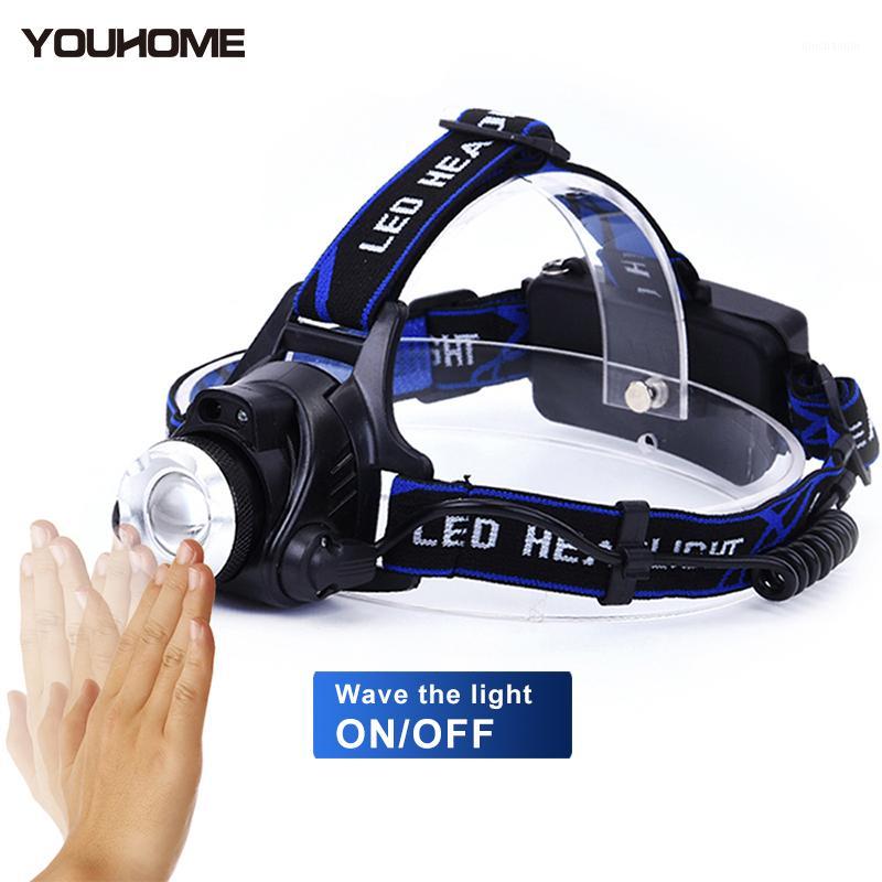 YOUHOME IR Sensor Headlight USB Rechargeable Zoomable Headlamp Waterproof Super bright camping handwave light Free shipping1