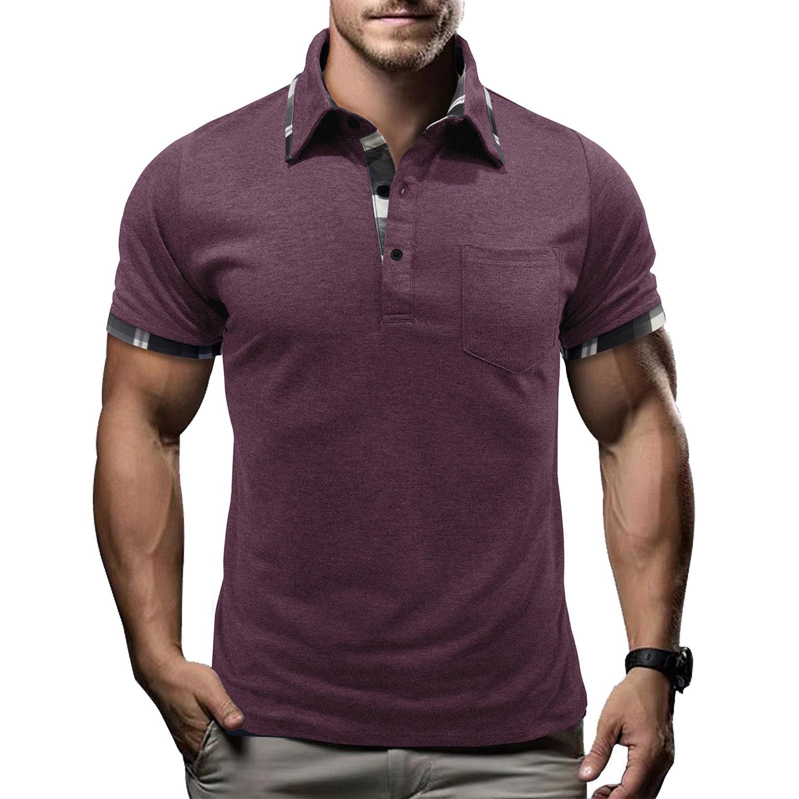 Мужская футболка с короткими рукавами и воротником-лацканами, повседневный топ с круглым вырезом XL винный