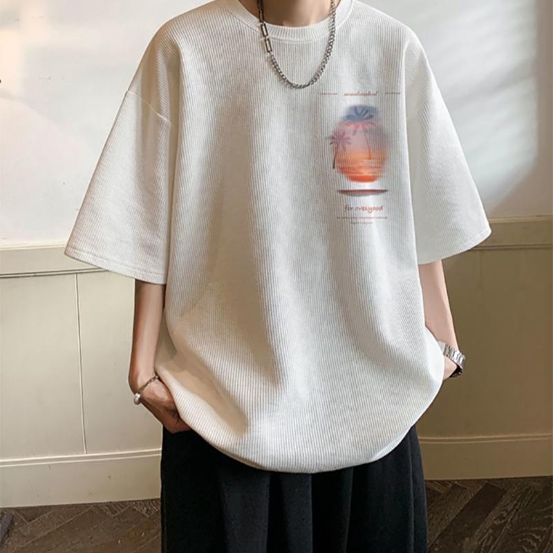 Мужская футболка с короткими рукавами в стиле Ins, 100% хлопок, вафельная, с пятью рукавами, свободные модные летние винтажные повседневные удобные футболки с половиной рукава S белый